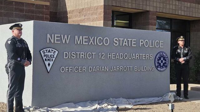 DEMING – The New Mexico State Police have officially dedicated their District 12 headquarters building in Deming to the memory of fallen officer Darian Jarrott, who was killed in the line of duty during a traffic stop in 2021.